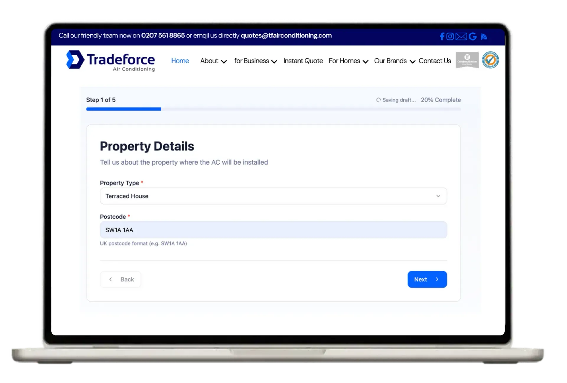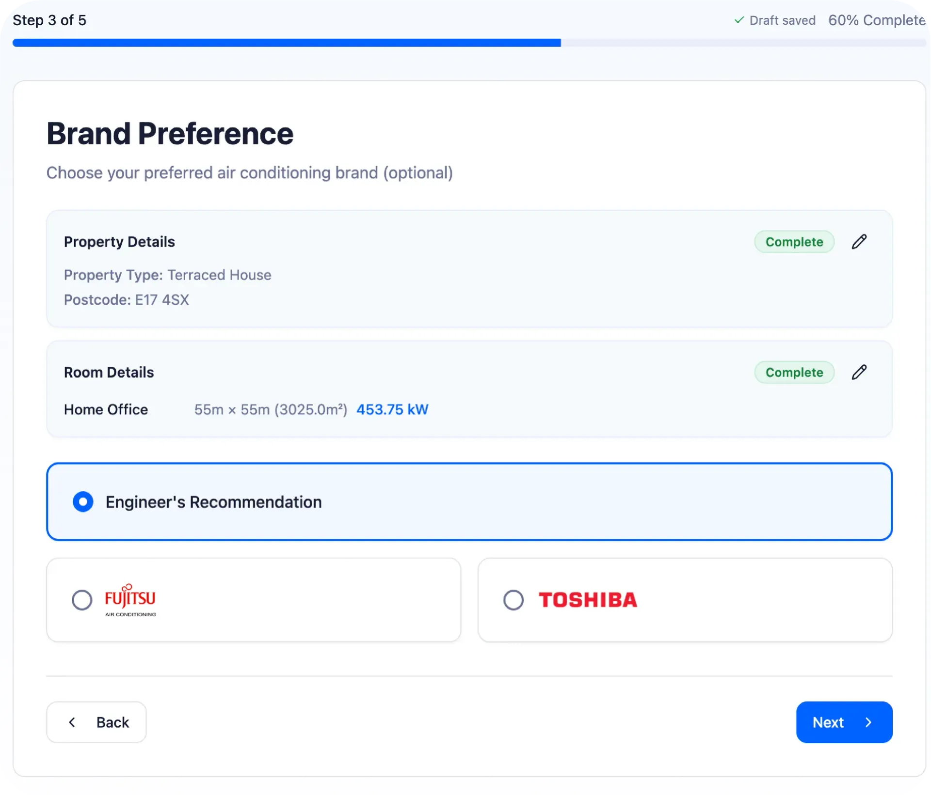 Quotestack helps Air Conditioning engineers generate accurate, professional quotes faster by guiding customers through a structured quote request, auto-sizing requirements, selecting equipment from your uploaded catalogues, and producing a branded quote output.
