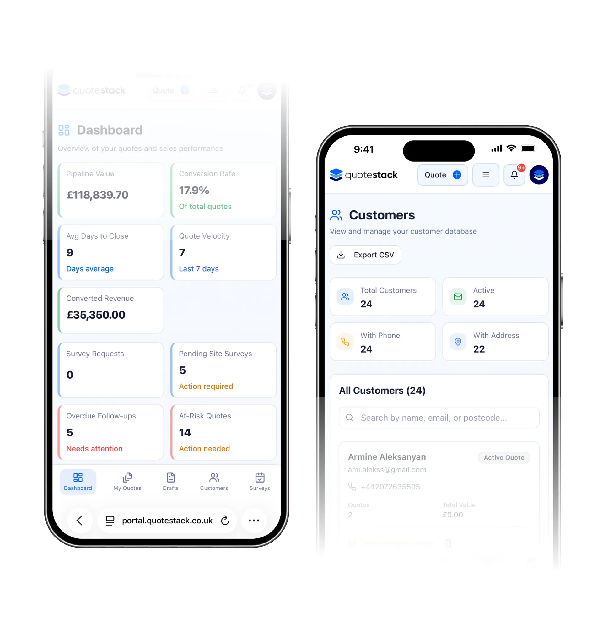 Most customers see value through reduced admin time, faster quote turnaround, improved lead follow-up consistency, and better conversion from quote → survey → sale.