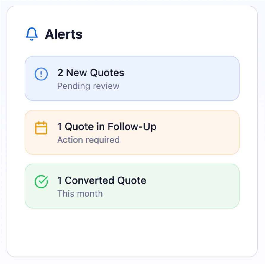 Begin your journey to towards seamless Quoting with our intuitive Dashboard.