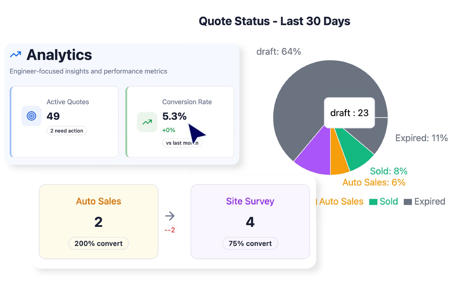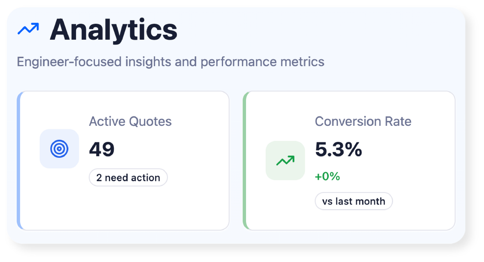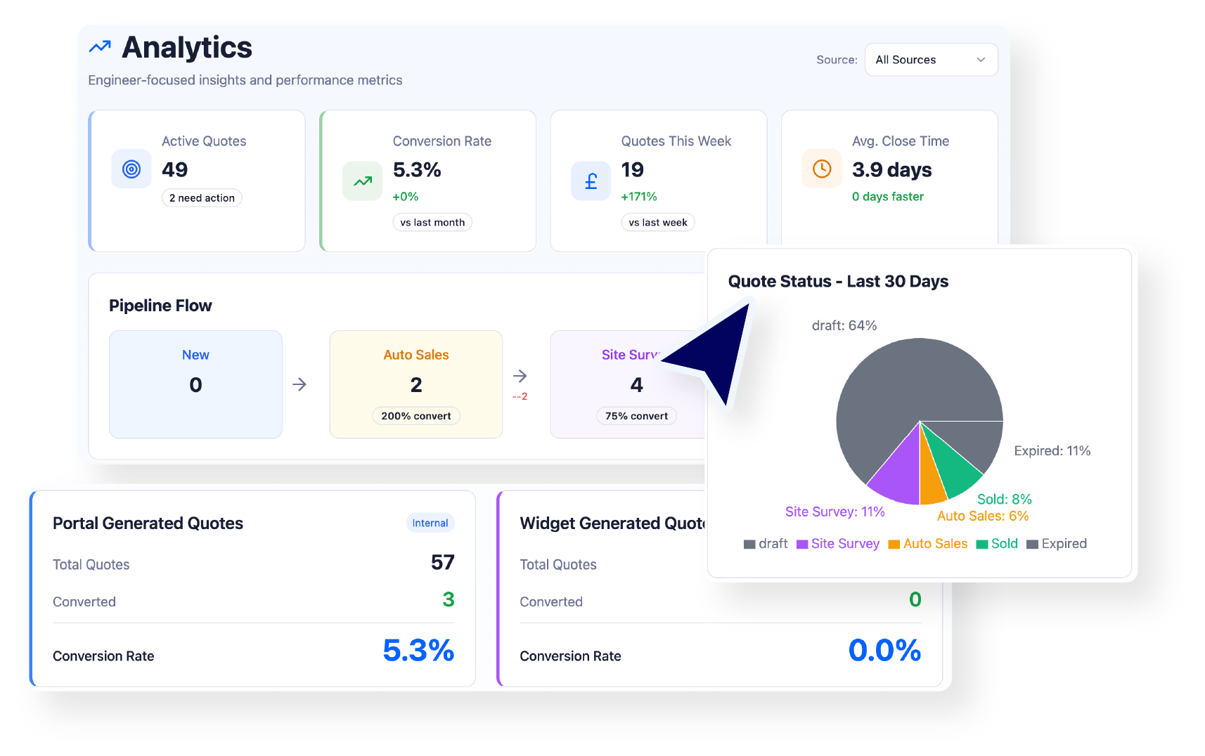 If you’re currently guessing what’s working, Analytics & Reporting gives you clarity: where sales are coming from, what’s stalling, and what to improve to win more work.