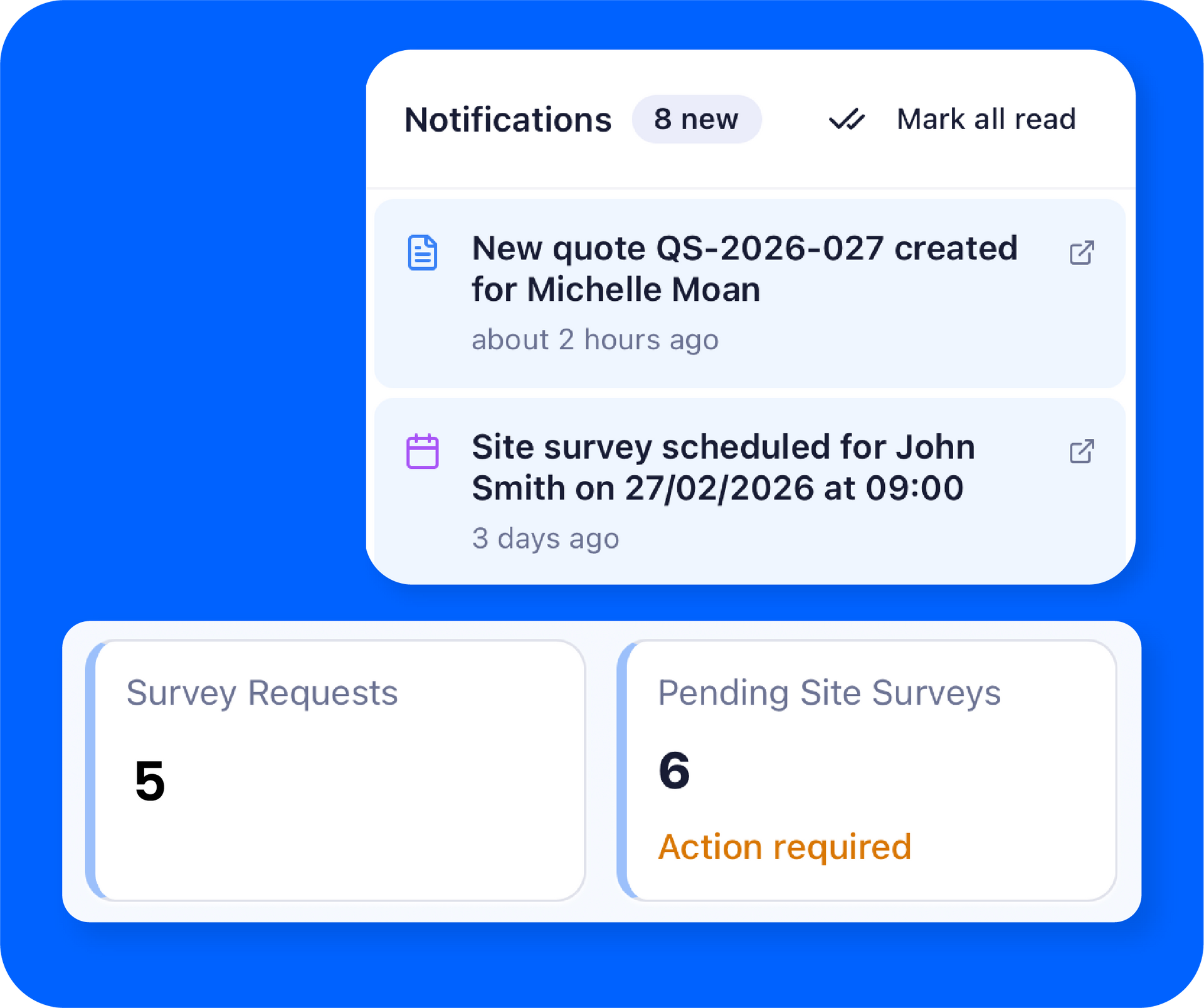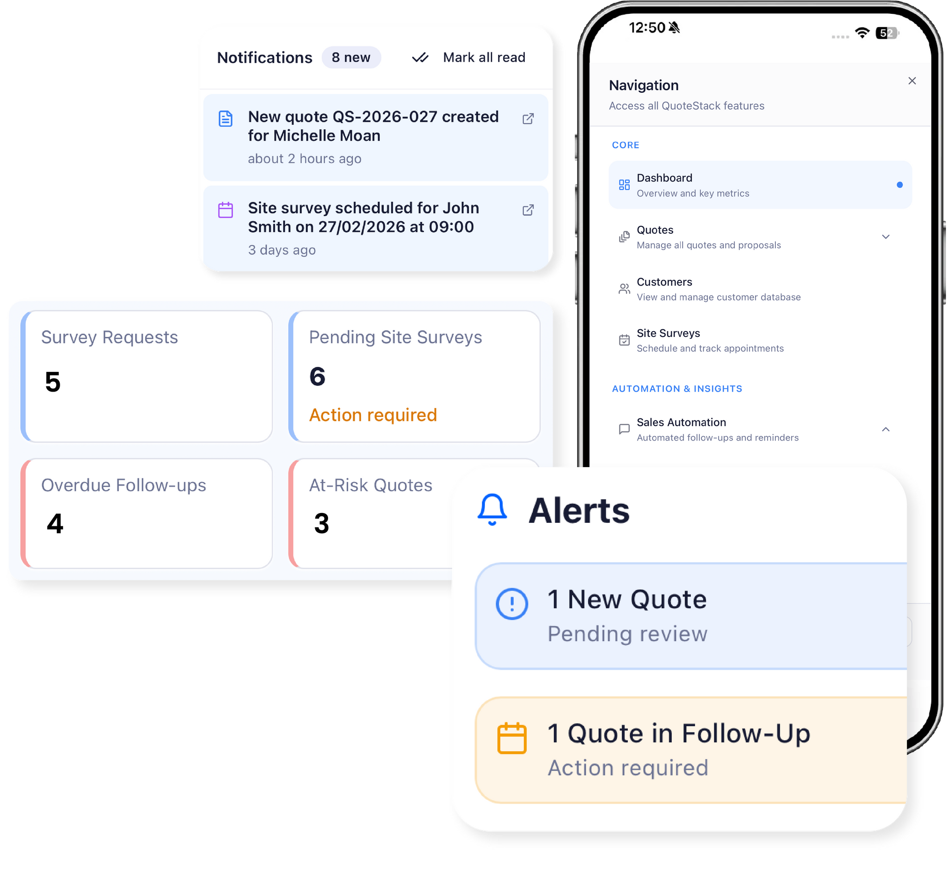 Quotestack is built for teams that spend their day on the road, on installs, and on site surveys, not behind a desk.