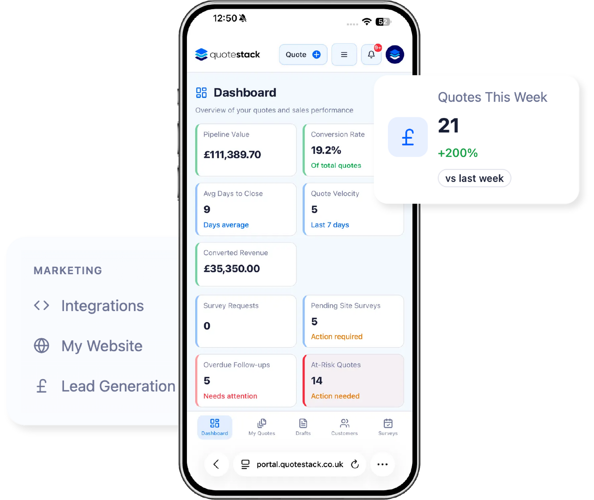 The automation features are incredible. The website widget allows potential customers to start the quoting process 24/7, and the system automatically sends out professional, branded PDFs. ven better, the automated follow-up emails and SMS sequences work like having a tireless sales assistant. We're booking more site surveys from cold leads without us having to make a single call.