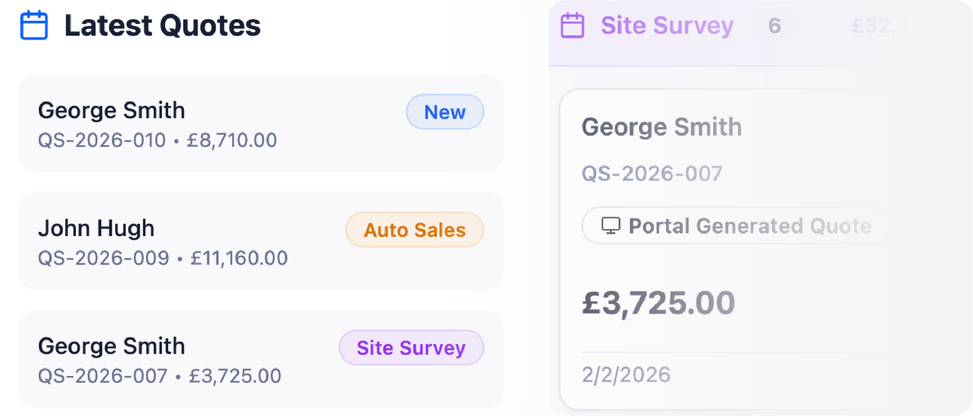 The automation features are incredible. The website widget allows potential customers to start the quoting process 24/7, and the system automatically sends out professional, branded PDFs. ven better, the automated follow-up emails and SMS sequences work like having a tireless sales assistant. We're booking more site surveys from cold leads without us having to make a single call.