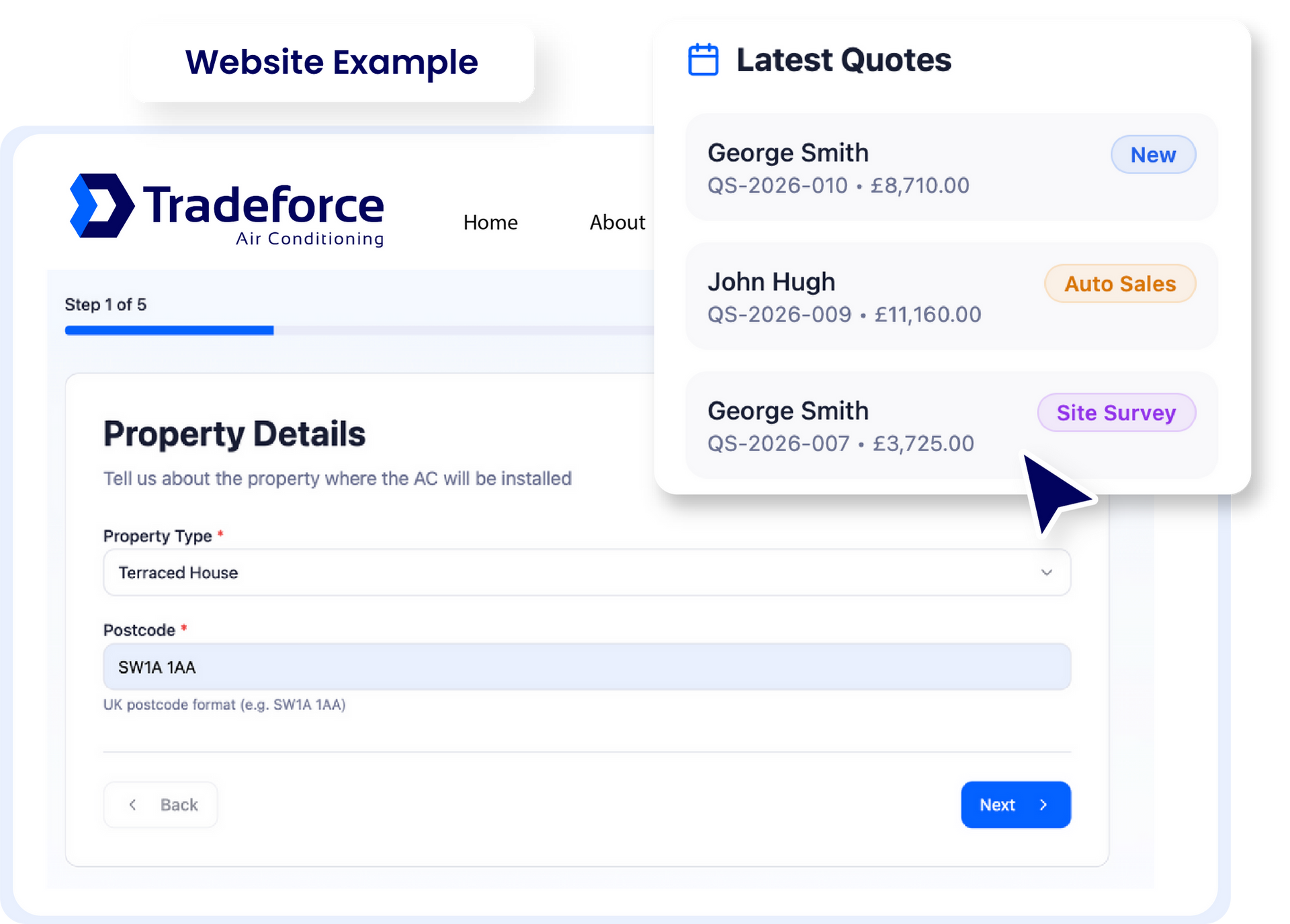 Stop losing leads to slow replies and messy inbox follow-up. With Quotestack website integration, customers can start the quote journey directly from your site - any time, any device, so enquiries arrive structured, qualified, and ready to progress.