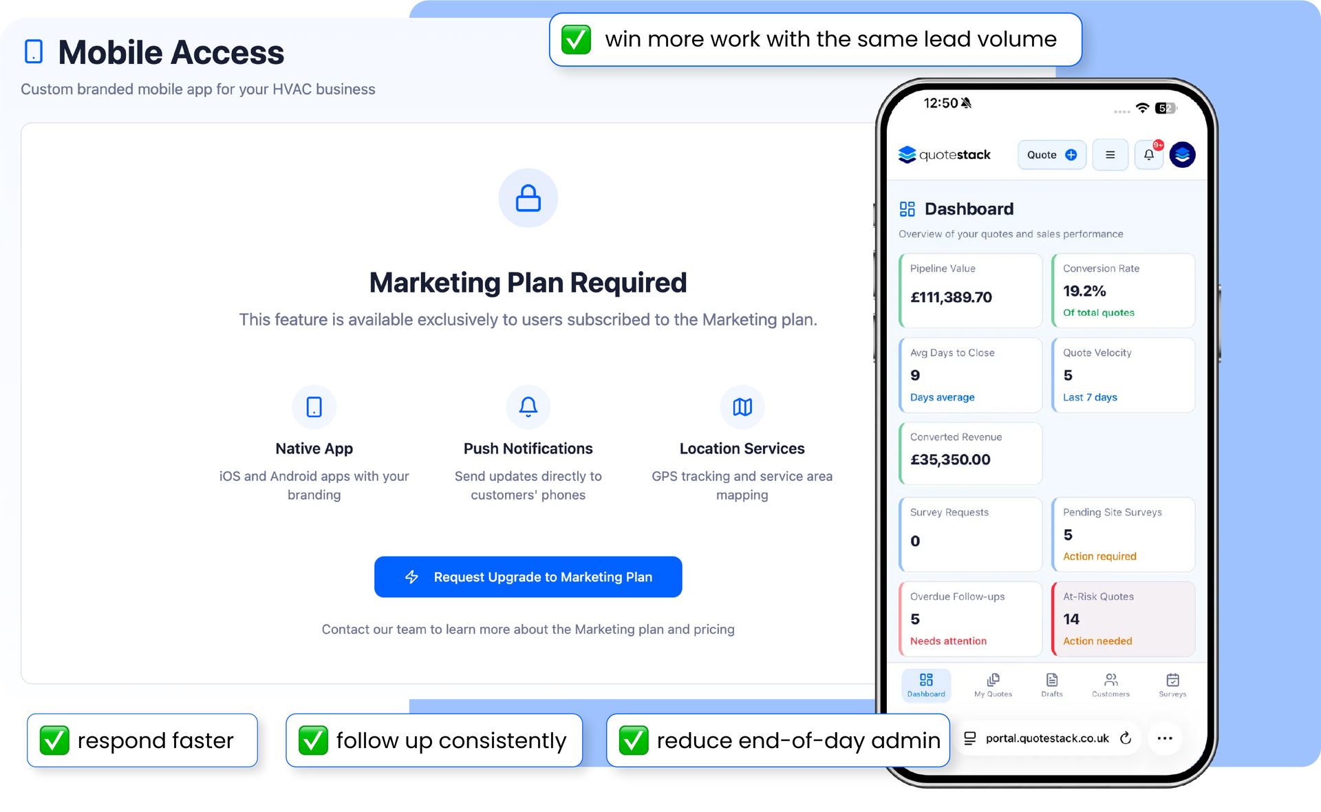 Mobile Access makes it easy to respond faster, reduce admin, and progress quotes from