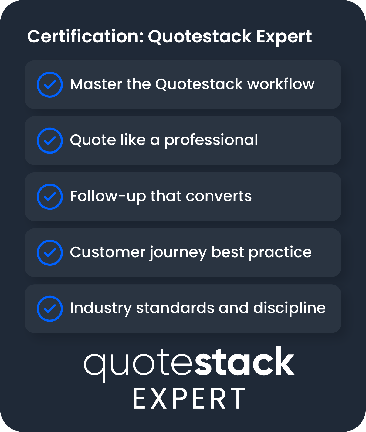 Whether you’re learning the trade or leading a team, Quotestack Academy is designed to help you quote faster, follow up consistently, and deliver a smoother experience that customers notice.