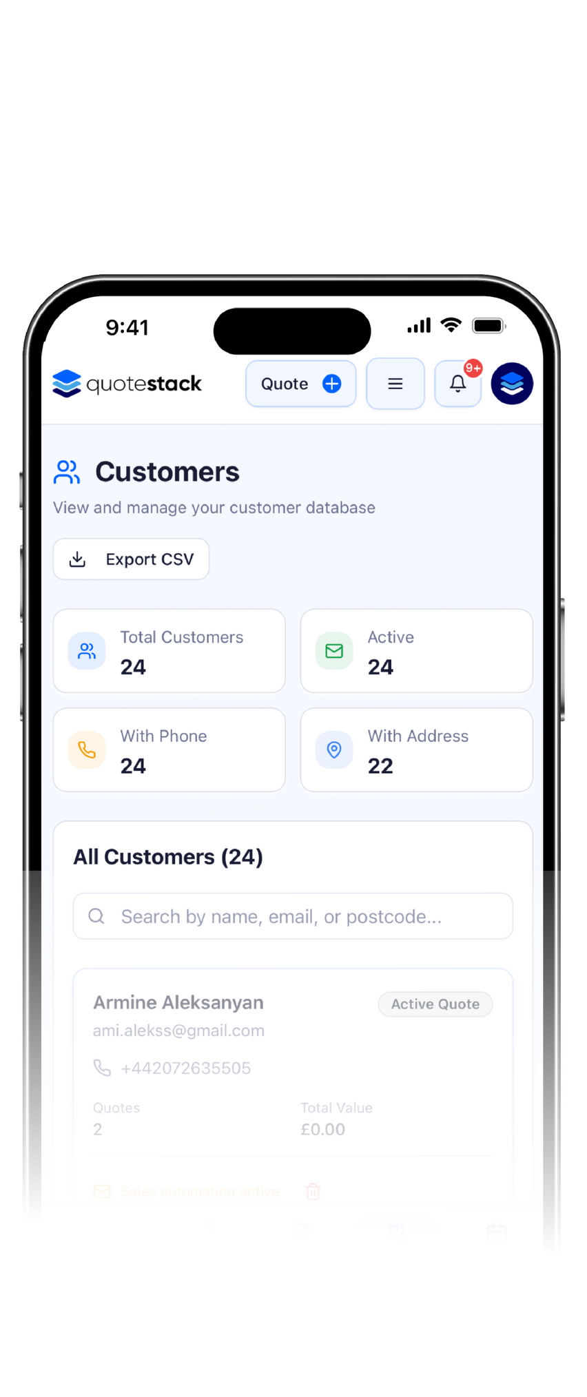 The automation features are incredible. The website widget allows potential customers to start the quoting process 24/7, and the system automatically sends out professional, branded PDFs. ven better, the automated follow-up emails and SMS sequences work like having a tireless sales assistant. We're booking more site surveys from cold leads without us having to make a single call.