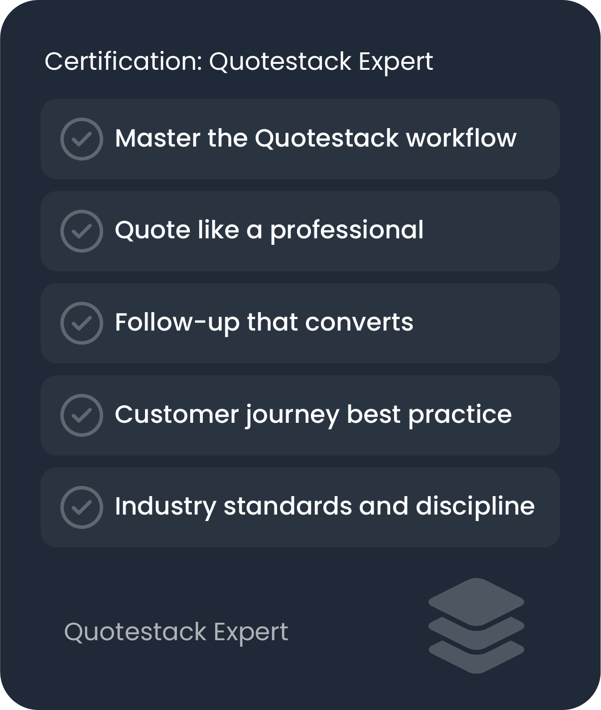 Successful completion will award Quotestack Expert accreditation — a signal that you’re competent in: