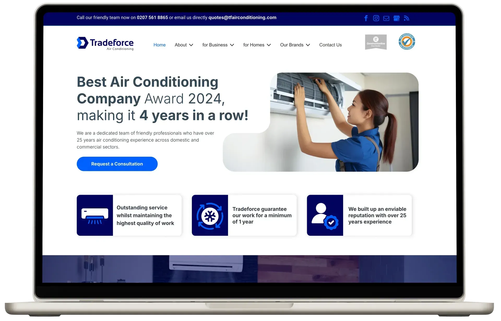 We build fast, professional websites for air-conditioning and HVAC businesses that integrate directly with Quotestack — helping you capture more leads, send quotes faster, and convert more enquiries.