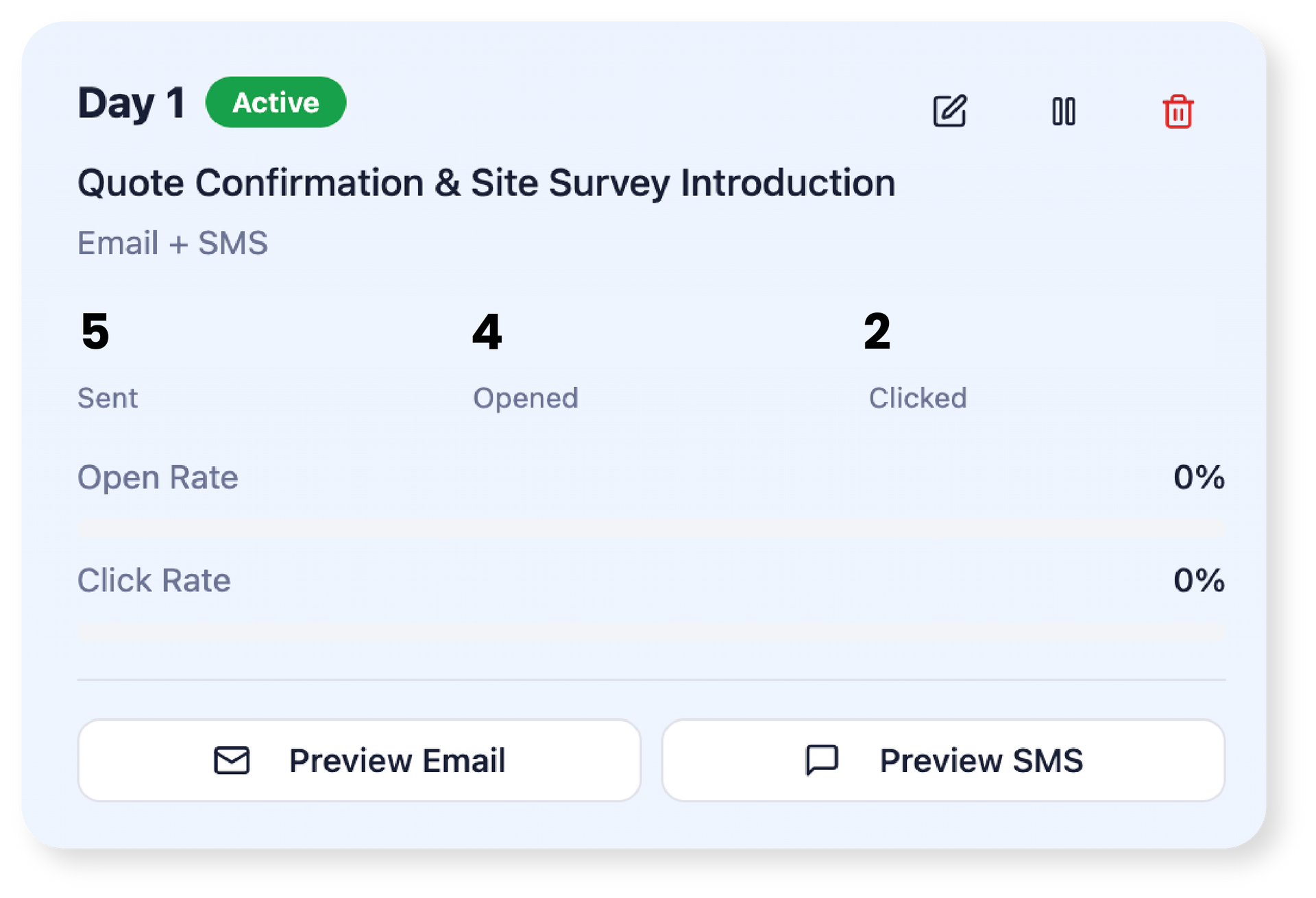 You’ll see the lead in Quotestack, generate an estimate, and then move them toward booking a site survey. The follow-up process can be automated (email/SMS) to improve